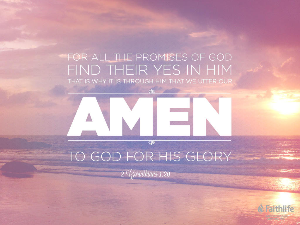 For as many as are the promises of God, they all find their Yes in Him [Christ]. For this reason we also utter the Amen (so be it) to God through Him [in His Person and by His agency] to the glory of God. (2nd Corinthians 1:20 – The Amplified Classic)