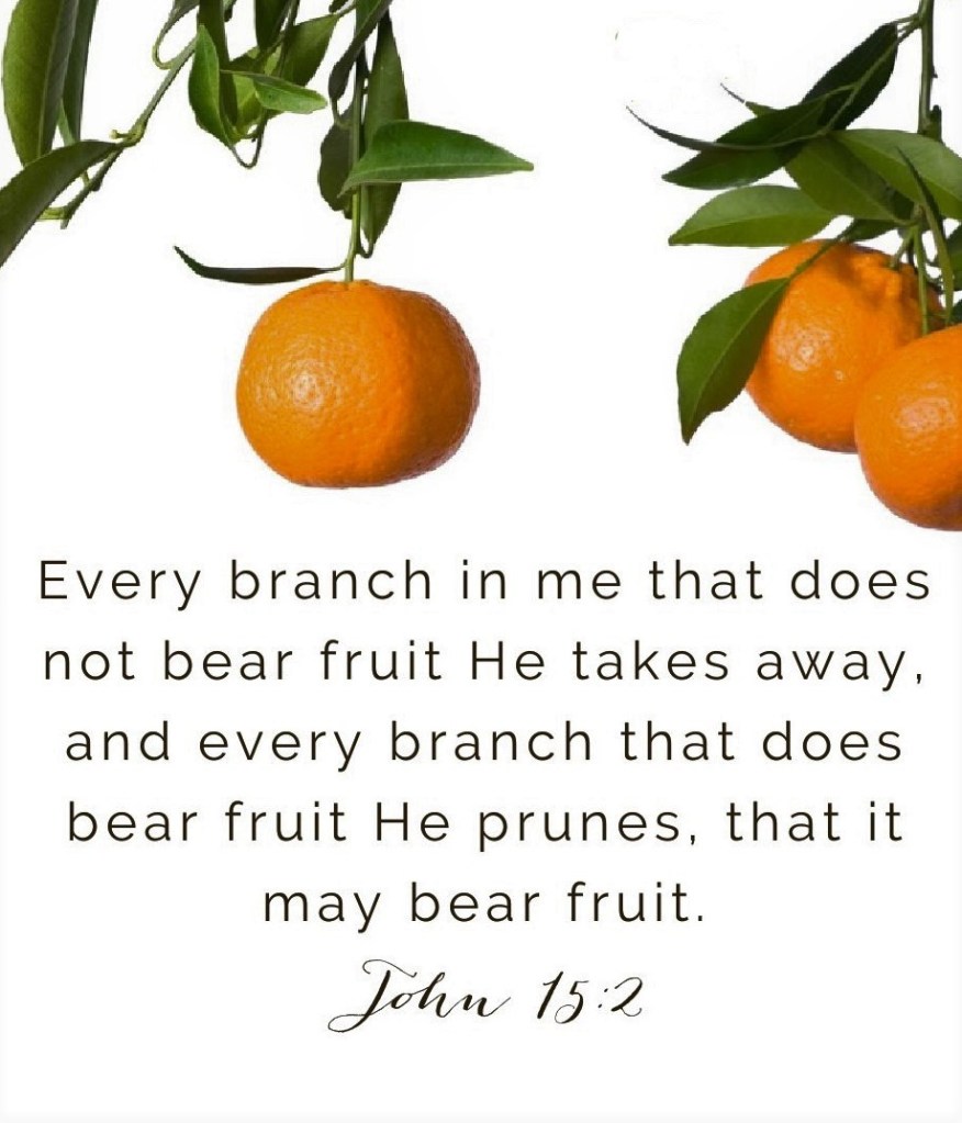 “He cuts off every branch in me that bears no fruit, while every branch that does bear fruit he prunes, so that it will be even more fruitful.” (John 15:2)