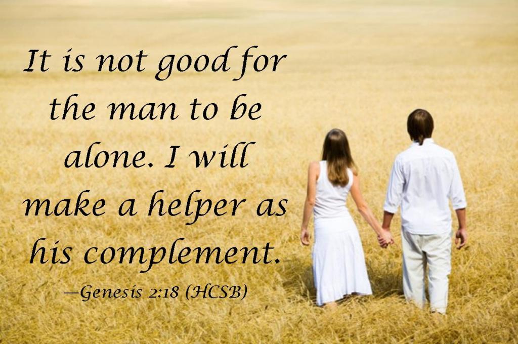 “Now the Lord God said, It is not good (sufficient, satisfactory) that the man should be alone; I will make him a helper (suitable, adapted, complementary) for him.” (Genesis 2:18)
