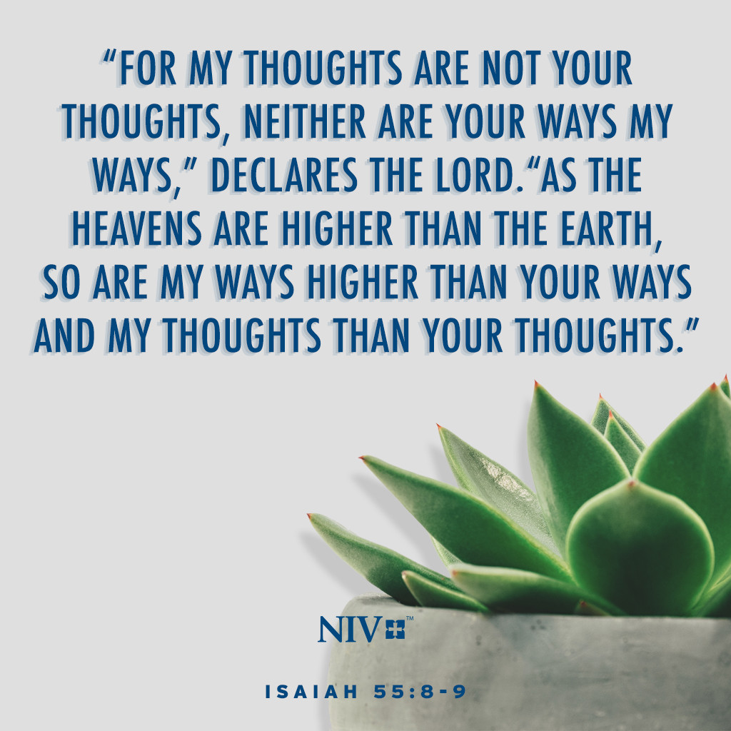 “For My thoughts are not your thoughts, nor are your ways My ways,” says the Lord. For as the heavens are higher than the earth, so are My ways higher than your ways, and My thoughts than your thoughts.” (Isaiah 55:8-9)