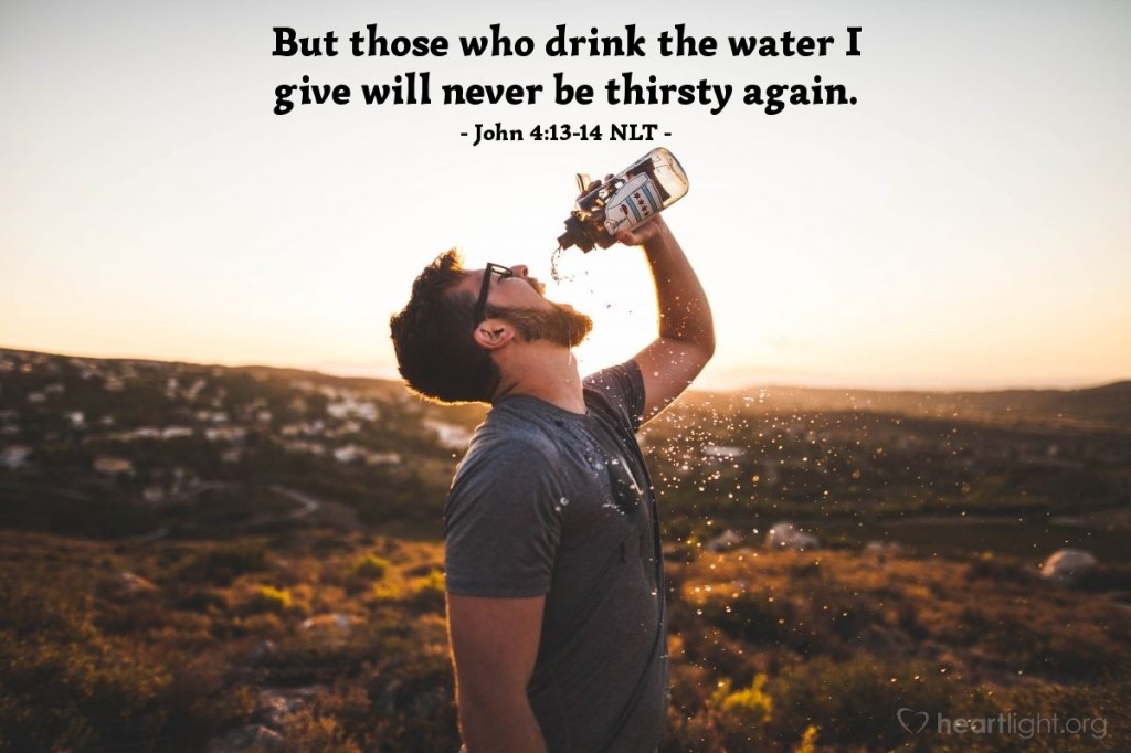“But whosoever drinketh of the water that I shall give him shall never thirst; but the water that I shall give him shall be in him a well of water springing up into everlasting life.” (John 4:14)