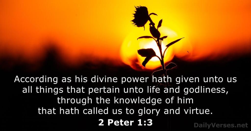 “According as his divine power hath given unto us all things that pertain unto life and godliness, through the knowledge of him that hath called us to glory and virtue..” (2nd Peter 1:3)